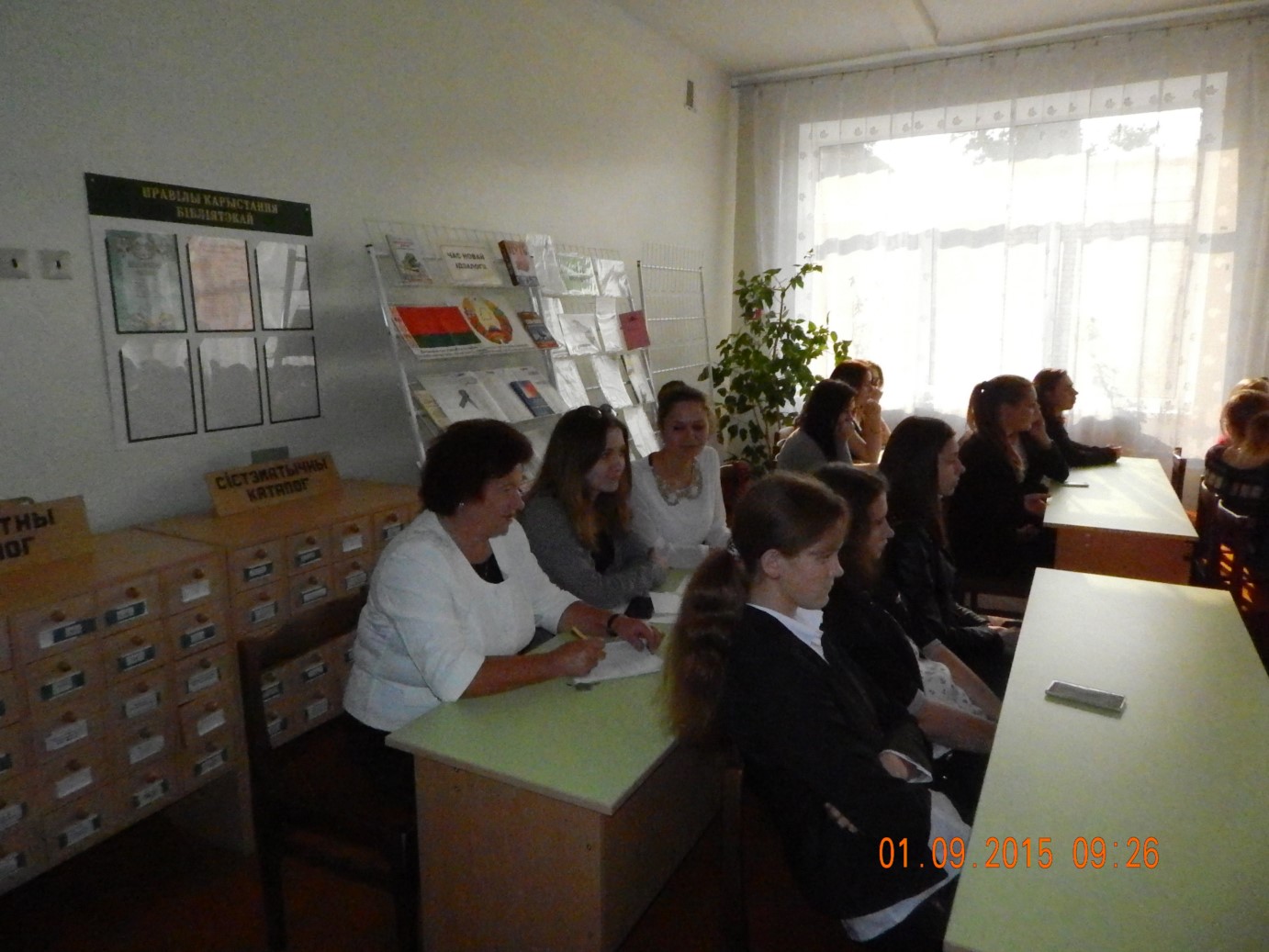 Для группы ЭП-1 знакомство с колледжем началось с библиотеки. Именно там, в читальном зале, проходил урок знаний. Выступая перед своими товарищами, учащиеся группы УП-21 Кондрашевич К., Червякова С., Стульба Т., Кашпар К., Цыва М., говорили о достижениях молодежи в развитии экономики, науки, техники, культуры, спорта. Подводя итог урока, куратор А.А. Гайдук, делает вывод: «Слаўная моладзь, мілая моладзь, Нашай бязмежнай краіны, Горы і долы здолець ты зможаш, Маеш у сабе моц і сілы”.